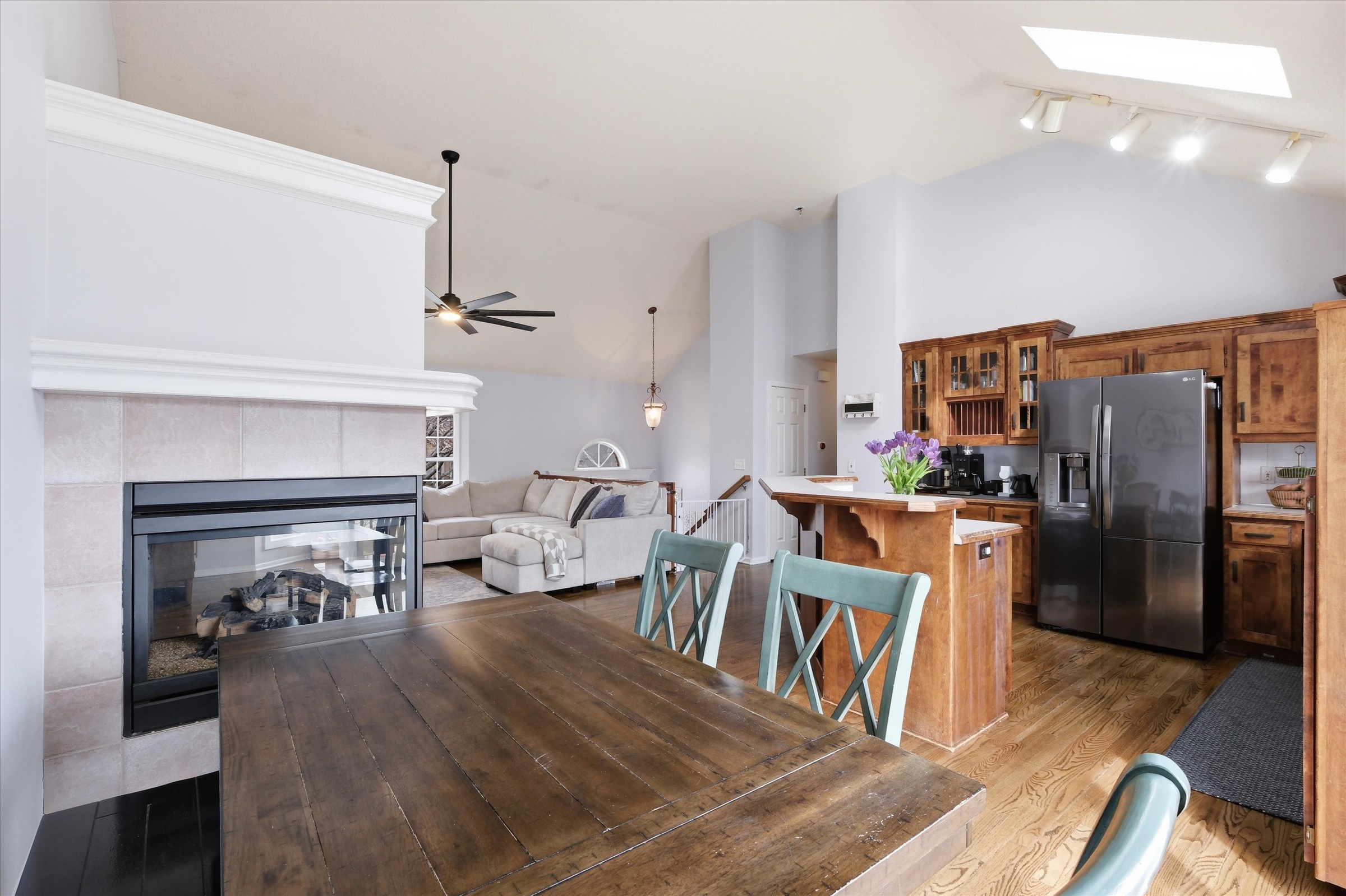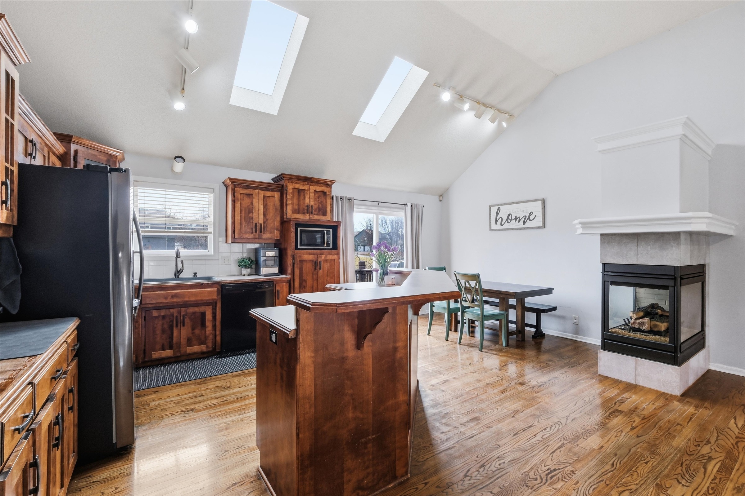 Welcome Home! Fresh, inviting, and thoughtfully designed for everyday living, this Olathe home offers the perfect blend of comfort, functionality, and space to grow. From the moment you arrive, you’ll appreciate the inviting curb appeal that sets the tone for what’s inside. Step through the front door to discover a bright and open layout filled with natural light and vaulted ceilings, creating a warm and inviting atmosphere throughout the main living spaces. The living area offers the perfect place to gather, relax, or entertain, flowing seamlessly into the kitchen and dining areas for easy everyday living. The home features comfortable bedrooms with great closet space, while the master suite serves as a peaceful retreat with room to unwind at the end of the day. Finished walk-out basement boasts additional living space with a large rec room, fireplace, new flooring and fresh paint. Enjoy entertaining this spring on your deck, covered patio and fenced in yard. Located close to the neighborhood pool, park, shops, dining and highway access. Don't miss out!